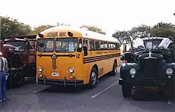 In 1932, Crown Motor Carriage Company built its first complete school bus, in a shift from building bus bodies on cowled truck chassis.[1] Externally modeled after Twin Coach body designs,[2] the school bus body used a front-engine layout, with the Waukesha gasoline engine positioned next to the driver.[1] The body was of all-metal construction with an integrated chassis and safety glass;[2][3] for braking, in addition to the standard hydraulic service brakes, the Crown bus was equipped with a redundant hand-operated system alongside the standard parking/emergency brake.[1]