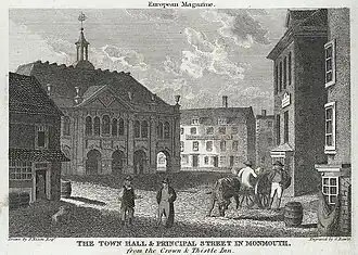 {{cite web}}: Missing or empty|url=(help) - ^ "The town hall & Principal street in Monmouth, from the Crown & Thistle inn". peoplescollection.org.uk. People's Collection Wales. Archived from the original on 24 December 2012. Retrieved 2 June 2012.