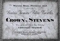 Crown v. Stevens is a 1936 British crime thriller film directed by Michael Powell, starring Beatrix Thomson and Patric Knowles and featuring Glennis Lorimer and Googie Withers. It was made as a "quota quickie",[1] a film made to fulfill a legal requirement at the time that a certain percentage of films shown in British movie theatres be made in the U.K. by British personnel.
