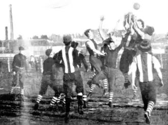 This meant that while Croxton Park always had a football tenant, those tenancies were often controversial and changeable. The Northcote Football Club (VJFA) played at the ground from 1899 until 1903, before crowd behaviour prompted the VJFA to force the club to move to the newly improved Northcote Park. The following year, the rival Rose of Northcote Football Club was formed, also in the VJFA, and was permitted to play at Croxton Park throughout its existence from 1904 until 1908.[15] In 1909, after further upgrades to Croxton Park, the Northcote Football Club (now playing in the Victorian Football Association) returned to the venue and played there until 1914. Then, in 1915, after a bitter split within the club's committee, Northcote moved back to Northcote Park, where a new grandstand had just been opened;[16] the faction of the club's committee loyal to Croxton Park formed a new club, the City of Northcote Football Club, which played there in the VFJA from 1915 until 1918[17] – with the exception of 1917 when it sat out of football.[18]