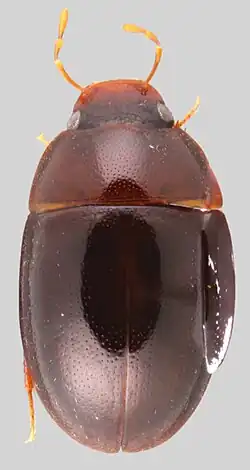 Small beetles (2.0–2.5 mm), smooth and shiny dorsally, orange-brown to dark brown in coloration, with long maxillary palps. The most salient characteristic of the genus is the presence of a longitudinal carina on the prosternum, which is accompanied by a cruciform elevation on the mesoventrite. A complete diagnosis was presented by Girón and Short.[1][2]