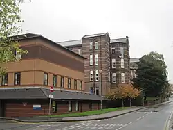 ![]() North Manchester General Hospital (the older buildings in the background formed part of Delaunays Hospital) | |