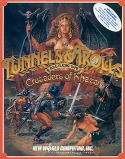 Crusaders of Khazan is a computer adaptation of the tabletop role-playing game Tunnels and Trolls, developed and published by New World Computing in 1990 for DOS, FM Towns, PC-88 and PC-98. The game is available from Flying Buffalo and in Fiery Dragon's Tunnels and Trolls 30th Anniversary Edition.[1][2] The game was an international production, designed and directed in the US but programmed in Japan.