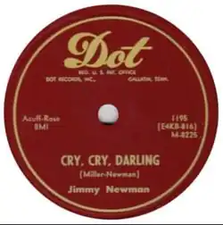 "Cry, Cry, Darling" is a song written by Jimmy C. Newman and J. D. "Jay" Miller, performed by Newman, and released on the Dot label (catalog no. 1195). It was produced by Shreveport music shop owner, Stan Lewis.[1]