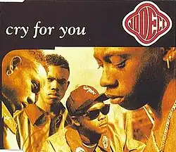 "Cry for You" is a song by American R&B group Jodeci recorded for their second album, Diary of a Mad Band (1993). The song was released as the album's lead single in November 1993 by Uptown/MCA. It peaked at numbers fifteen and nineteen on the US Billboard Hot 100 and Cash Box Top 100. The song also spent four weeks at number one on the Billboard R&B/Hip-Hop songs chart (the last of five Jodeci songs to hit number one on that chart), and number one on the Billboard Mainstream R&B/Hip-Hop airplay chart. It was certified Gold by the Recording Industry Association of America for sales in excess of 500,000 units.