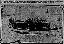 - Police patrol boat, like the 1908 San Francisco 50x10 Police patrol launch boat.[8]