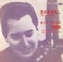 The song was the third hit single recorded by Sedaka immediately following the success of his first hit single "The Diary", and the follow-up single "I Go Ape." Released in early 1959, "Crying My Heart Out for You" was not as successful as Sedaka’s previous two hits, and failed miserably on the U.S. pop charts, "bubbling" under the Billboard Hot 100 chart with a #111 peak.[1] However, it was more successful in Italy, where the record hit #6.