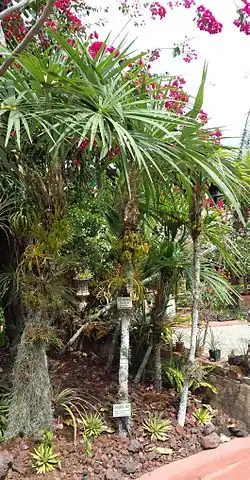 | Crysophila nana at the Vallarta Botanical Gardens with Tillandsias growing along the trunks | |