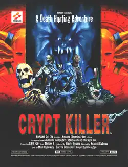 Crypt Killer (released as Henry Explorers in Japan[a]) is an on-rail gun shooting game by Konami originally distributed as an arcade game in 1995, followed by consumer versions for the Sega Saturn and PlayStation in 1997, along with a PC CD-ROM conversion for Microsoft Windows released exclusively in Japan during the same year. The Saturn version makes use of Sega's Virtua Gun (released as the Stunner in North America),[1] whereas the PlayStation version is compatible with Konami's own Hyper Blaster light gun peripheral (released in North America as The Justifier). The game's scenery and characters are all 3D polygon models, while most of the enemies and their projectiles are 2D sprites.[2]