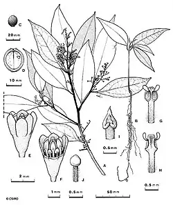 Cryptocarya clarksoniana, commonly known as Clarkson's laurel,[2] is a tree in the laurel family and is endemic to north Queensland. Its leaves are lance-shaped to elliptic, the flowers creamy-green and tube-shaped, and the fruit a spherical black drupe.