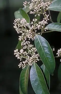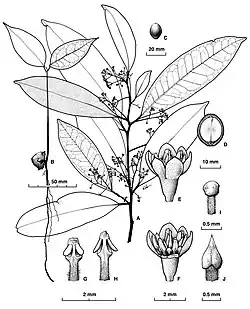 Cryptocarya claudiana, commonly known as Claudie laurel,[2] is a tree in the laurel family and is endemic to Cape York Peninsula in Queensland. Its leaves are oblong to elliptic, the flowers creamy-green, perfumed and tube-shaped, and the fruit an elliptic or spherical black drupe.