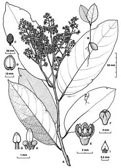 Cryptocarya mackinnoniana commonly known as Mackinnons laurel, Mackinnons walnut, rusty laurel, rusty leaved laurel, rusty leaved walnut or koonjoongaroo,[2] is a species of flowering plant in the family Lauraceae and is endemic to north Queensland. It is a tree with oblong to narrowly elliptic to oval leaves, creamy green and pale brown, unpleasantly perfumed flowers, and elliptic black drupes.