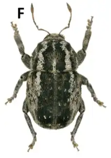 Adults reach a length of about 4.5–5 mm and have an integument black body, with the antennae, tarsi and sometimes tibiae reddish.