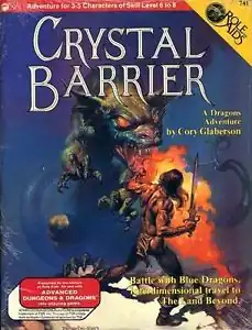 Crystal Barrier is an adventure in which the player characters are pulled to another dimension through a crystal barrier to put a stop to a drug which could affect the balance of a civil war between the dragons of the Dragonlands.[2]