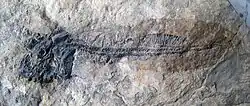 1. ^ Ørvig, Tor (November 1960). "New Finds of Acanthodians, Arthrodires, Crossopterygians, Ganoids and Dipnoans in the Upper Middle Devonian Calcareous Flags (Oberer Plattenkalk) of the Bergisch Gladbach-Paffrath Trough: Part 1". Paläontologische Zeitschrift. 34 (3–4): 312. doi:10.1007/bf02986872.