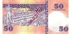 $50 150 x 70 mm Purple, orange, and yellow Monument to Calixto García e Iñiguez, in front of Havana’s Sea Wall. LA BATALLA DE IDEAS: Marchers carrying flags and banners that read “TRINCHERAS DE IDEAS VALEN MAS QUE TRINCHERAS DE PIEDRA” and “LA BATALLA DE IDEAS”. 2006, 2007, 2011 January 1, 2021 Visible against the light José Martí's effigy and number "50".