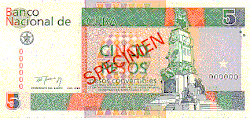 In the year 2004, the Central Bank of Cuba issued its first series of convertible peso bills with face values of 5 and 10 convertible pesos. The printing is flat, and the front and back design is generally similar to the 1994 series issued by the National Bank of Cuba, showing the legend "Central Bank of Cuba" and its logo. The security elements present are the localized watermark with the effigy of José Martí and the security thread with the text "PATRIA O MUERTE - VENCEREMOS"