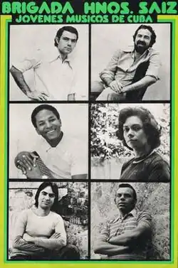 During the early 1970s, a group of musicians and composers, most of them graduated from the National School of Arts and the Havana Conservatory, gathered around an organization recently created by the government as the junior section of UNEAC (National Union of Writers and Artists of Cuba), the Brigada Hermanos Saíz.[30][31] Some of its member were composers Juan Piñera (nephew of the renowned Cuban writer Virgilio Piñera),[23] Flores Chaviano, Armando Rodríguez Ruidíaz, Danilo Avilés,[23] Magaly Ruiz, Efraín Amador Piñero and José Loyola. Other contemporary composers less involved with the organization were José María Vitier, Julio Roloff,[23] and Jorge López Marín.[32]