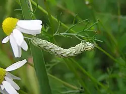 The larvae feed on chamomiles, especially Matricaria perforata.[2]
