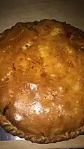 - Pizza rustica lucana: known with different names such as scarcedda, pasticcio, cazzola or cuzzola, it is a savory pie of the Easter period with a filling of eggs, ricotta (or toma), pecorino and soppressata (or sausage).[55]