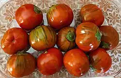 Peperone crusco, a variety of dried bell pepper, is a key element of the regional cooking, so much to be labeled as "the red gold of Basilicata".[16] It is consumed both as a snack and in the preparation of first courses, second courses and appetisers, such as pasta con i peperoni cruschi, baccalà alla Lucana (salt cod) and acquasale. A very used aromatic element is horseradish, defined by people from Basilicata as "poor man's truffle", historically common on the tables of labourers because of its accessible costs and its wide spreading in the territory.[17] Horseradish is a fundamental ingredient of condiments such as ndruppeche, main courses such as rafanata or by mixing it with bread and potatoes to prepare meatballs, as well as to flavor meat.