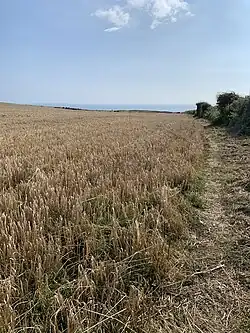 In the 18th century, surveys indicate that crops grown in Gower included corn, hay, flax, hemp, hops and fruit. Livestock kept included sheep, cattle, pigs, geese, fowl and bees.[1] Many Gower villages were self-sufficient in food, and residents paid a yearly rent to the lord of the manor for fishing rights.[1] In south and west Gower a feudal or manorial system of open fields, and related areas of common land for the grazing of livestock, had developed after the Norman invasion. The land remained linked to this feudal pattern for many centuries afterwards, and tithes were paid in kind, comprising one lamb out of ten, a tenth of the wool shorn, and a tenth part of the grain crop.[1]