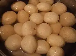 The cuisine of Odisha is the cuisine of the Indian state of Odisha. Compared to other regional Indian cuisines, Odia cuisine uses less oil and is less spicy, while nonetheless remaining flavorful.[1] Rice is the staple food of this region. Mustard oil is used in some dishes as the cooking medium, but ghee (made of cow's milk) is preferred in temples. Odia foods are traditionally served either on brass or bronze metal plates, banana leaves, or disposable plates made of sal leaves.[2]