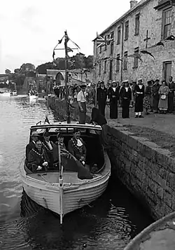 The winter herring industry gives large landings of fish, especially around the estuary of the River Cleddau at Llangwm, Pembrokeshire. This was once an important component of the county's inshore fishery, with the catch being made into kippers and bloater (herring) at Milford Haven's fish docks.[19] At Llangwm the inhabitants formerly lived exclusively by fishing cockle (bivalve)s, oysters, mussels and clams collected at low tide from the Llangwm boats, which were the modern equivalent of the British osier or coracle.[20]