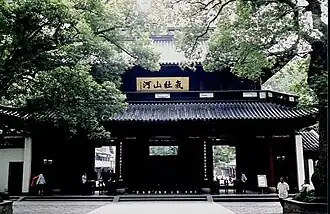 The statues of the "Mad and Crazy Monks" were often seen together in various temples throughout the Southern Song dynasty. There are two such statues of these arhats in the Daxiong Temple Hall of Zhantan Forest on Mount Jiuhua. One of them is the "Crazy Monk" Ji Gong in the form of a deity and the other is the "Mad Monk" Fengbo holding a duster in one hand and a broom under his left armpit, standing ever ready to give the wicked Prime Minister another sweep.[32]
