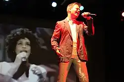 In his book, Gay Icons: The (Mostly) Female Entertainers Gay Men Love (2018), French academic Georges-Claude Guilbert wrote, "I do not think that anyone would dispute Houston’s gay iconicity... She was beautiful, she was black, she was fierce (sometimes), she sang dance music."[112] Said Gerrick Kennedy in 2022 to CNN: "She was really the first one to do those big house remixes in a way we weren’t really seeing from Black girls. There was an element of performance in a space where queer people, especially Black queer people, were able to find freedom and liberation. That’s our connection with diva figures – how they make us feel, and it’s usually rooted in some form of liberation."[112] Kennedy noted the release of Houston's critically acclaimed 1998 album, My Love Is Your Love, as "the moment when I, a Black queer boy growing up in the Midwest, which was super oppressive, felt free."[112] During her Billboard interview promoting her album, Born This Way, Lady Gaga referenced Houston alongside other female icons of the 1990s era, including Madonna, TLC and En Vogue as female artists who "were making very empowering music for women and the gay community and all kind of disenfranchised communities, the lyrics and the melodies were very poignant and very gospel and very spiritual", using them as influence into the creation of her hit of the same name.[113] At the 2011 Grammy Awards, while accepting the Grammy for Best Pop Vocal Album for her 2009 EP, The Fame Monster, Gaga directly thanked Houston for inspiring "Born This Way".[114]