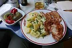 The cuisine of Romania has the same influences as the rest of Romanian culture; from Roman times, there still exists the simple pie called, in Romanian, plăcintă and keeping the initial meaning of the Latin word placenta.[5] The Turks brought meatballs (fried mititei or perişoare in a soup called ciorbă); from the Greeks, there is the musaca (moussaka) and covrigi (hot pretzels); from the Bulgarians, a wide variety of vegetable dishes like zacuscă; from the Austrians there is the şniţel (schnitzel); from the Hungarians, their ornate pastries; and the list could go on.