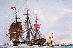 She arrived in Chile on 22 May 1818,[2] under the command of William Wilkinson. The Chileans purchased her for 210,000 pesos,[7] renamed her San Martín, and armed her with 64 guns.[8] Wilkinson remained her captain.