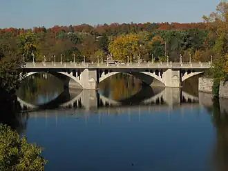 The Cummings Bridge in Ottawa, Ontario, Canada, crosses the Rideau River, connecting Rideau Street to Montreal Road in Vanier. It is a multi-span open spandrel arch bridge, constructed in 1921 and renovated in 1996.[1]