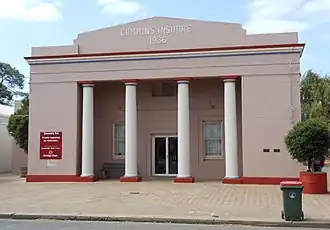 Cummins was named after William Patrick Cummins, a member of the South Australian House of Assembly from 1896 to 1907.[5] The town of Cummins was developed in 1910 a few years after the first settlers in the area arrived.[4] The railway to Port Lincoln arrived in 1907.[6] The bounded locality of Cummins includes the former railway sidings of Pillana (south of the town) and Wildeloo (north of it).