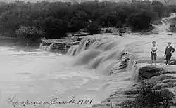 The creek is so named because of sandstone formations in the former bed of the creek.[3]