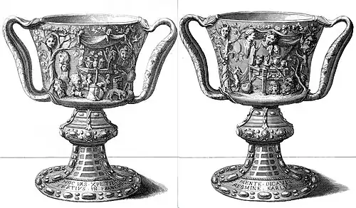 The Cup of the Ptolemies (French: Coupe des Ptolémées), also known as the Cup of Saint Denis,[1] is an onyx cameo two-handled cup, or kantharos.[2][3] It is 8.4 cm high, and 12.5 cm across.