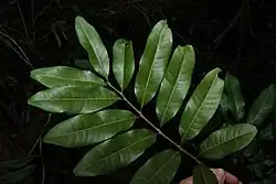 Cupaniopsis simulata, commonly known as northern tuckeroo,[2] is a species of flowering plant in the soapberry family and is endemic to eastern Queensland. It is a rainforest tree with paripinnate leaves with 4 to 12 elliptic leaflets, and separate male and female flowers arranged in a thyrse, the fruit a brownish orange capsule.