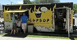 Throughout 2015, Cupbop expanded by opening more food trucks and a brick and mortar restaurant near Brigham Young University.[14][15] The company's recognizable branding led it to be frequently posted on social media and become known around the BYU campus.[16] Cupbop ran local events and marketing campaigns to promote growth.[17][18][16][19] Since its inception, Cupbop has opened over 64 stores across the U.S. and its sales have surpassed $64 million USD (30 billion won).[20]