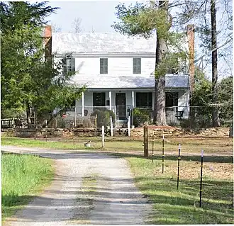 The Cureton-Huff House is located in Greenville County near Simpsonville, South Carolina, United States, on what is now known as West Georgia Road, or County Road 541. The two-story braced-frame farmhouse on a brick pier foundation was built ca 1820 for John Moon Cureton, a wealthy farmer. It was originally built in the common hall-and-parlor configuration but shortly after its initial construction, the house was altered to a central-hall configuration. Despite more modern additions to the rear of the house including a kitchen, bathrooms, dining room and office, the majority of the house has retained its original, historic Federal-period detailing.[2]
