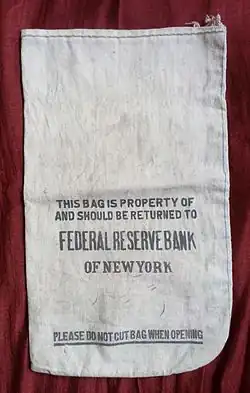 Fabric bags (see Money bag) are heavy duty cloth (woven and non-woven) bags are used to hold coins, rolls of coins, or bundles of banknotes. Bags can be tied shut, sealed with a cable tie or secured with a special security seal using tamper-evident technology.