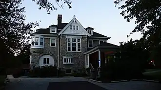 Curtis Mansion is a historic home located at Newark in New Castle County, Delaware. It was built in 1903 and is a 2+1⁄2 story, rectangular stone residence in the Richardsonian Romanesque style. It has a five-bay facade, cross-gable roof, and northeast corner tower. The house features a wrap-around porch with Doric order column posts. It was built by Alfred A. Curtis, one of the three sons of F. D. Curtis, owner and operator of the Curtis Paper Mill. The house was purchased by the University of Delaware and initially served as a dormitory for French students.[2] It was subsequently acquired in 1992 by the English Language Institute of the University of Delaware.