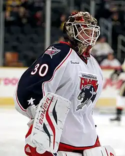 He made his professional debut in 2005–06 with the Omaha Ak-Sar-Ben Knights of the American Hockey League (AHL). He tied for the AHL lead in shutouts in 2006–07 while setting an Omaha team record with 44 wins. He played in the 2007 AHL All-Star game,[2] and was named to the AHL Second All-Star Team.[1]
