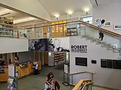 By the late 1960s, the small-town library that had been largely sustained since its beginnings by volunteers and private gifts had metamorphosed into a modern, professionally staffed library, supported primarily by town appropriations.[6] The building that had been erected for a population of 6,800 now served 18,000.[8] A municipal bond issue for the library addition was approved by referendum in April 1971, and ground was broken on May 30, 1972. The $500,000 addition opened November 12, 1973.[6]