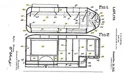 A patent for the Camp Car (US Pat. No. 1437172[14]) was filed on 28 April 1921 and issued on 28 November 1922. Although the Curtiss Camp Car patent referred to a second forthcoming patent application for a Curtiss-designed fifth-wheel coupling, no such patent was submitted. Images of the Camp Car held in the archives of the Glenn H. Curtiss Museum indicate that the fifth-wheel hitch used was the commercially available Martin Rocking Fifth Wheel.