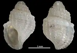 The length of the shell attains 3.6 mm, its diameter 1.9 mm.
