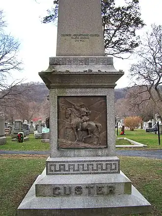 Custer monument next to his grave in the West Point Cemetery | |