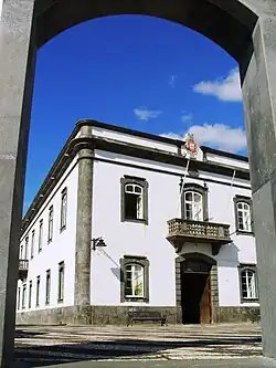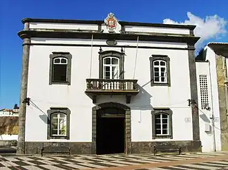 The building is situated in the urban context of the city of Angra, addorsed in the north by other buildings. It was erected on the southern limit of the urbanized block of the historical centre, in the oldest part of the city, limited by roads, the Patio da Alfândega and the city gates.[1] The Pátio da Alfândega is a square of Portuguese pavement stone (in alternating patterns) with bunks, oriented towards the port and bay of Angra.[1] Immediately nearby (to the east) is the Church of the Misericórdia of Angra and building of the detachment of the GNR Guarada Nacional Republicana Fiscal Brigade.[1]