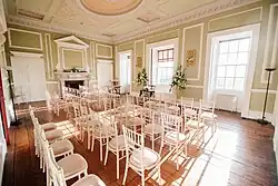 The property was then inherited by his nephew William Henry Thomas, who took the surname Battie-Wrightson by royal licence and died in 1903. He had married Lady Isabella Cecil, eldest daughter of the 3rd Marquess of Exeter. Between 1903 and 1909 Lady Isabella made further alterations to the house.[2] She died in 1917, leaving an only son Robert Cecil Battie-Wrightson (1888–1952). On his death in 1952, the estate descended to his sister, a nurse who had married a Major Oswald Parker but later was variously known as Miss Maureen Pearse-Brown and as Mrs Pearce. She was obliged to sell the contents of Cusworth Hall in October 1952 to meet the death duties levied at Robert Cecil's death. She subsequently sold the hall to Doncaster Council.[4]
