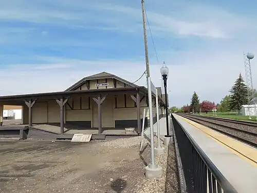 Cut Bank station is a train station in Cut Bank, Montana. It is served by Amtrak's Empire Builder, and is an important regional railway freight yard for BNSF Railway, which operates several grain collection elevators in the yard. The station site is owned by Amtrak,[5][6] while the adjacent yard, trackage and signals are owned by BNSF Railway. The station is less than a mile from Cut Bank Creek gorge, which gives the county seat, station, and yard their names.