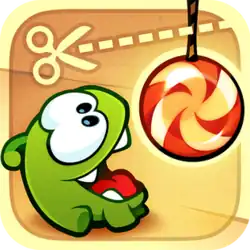 On each stage, a candy is hung by one or several ropes, which the player can cut. The goal of each stage is to get the candy to a green monster named Om Nom by cutting the ropes in a particular order while utilizing the game's physics to get the candy to Om Nom.[1][2] As the game progresses, new elements are added to the puzzles; examples including bubbles that can float the candy offscreen and spiders that can steal the candy.[3][2] Such elements require the player to utilize them in such a fashion that the candy can reach Om Nom.[3]